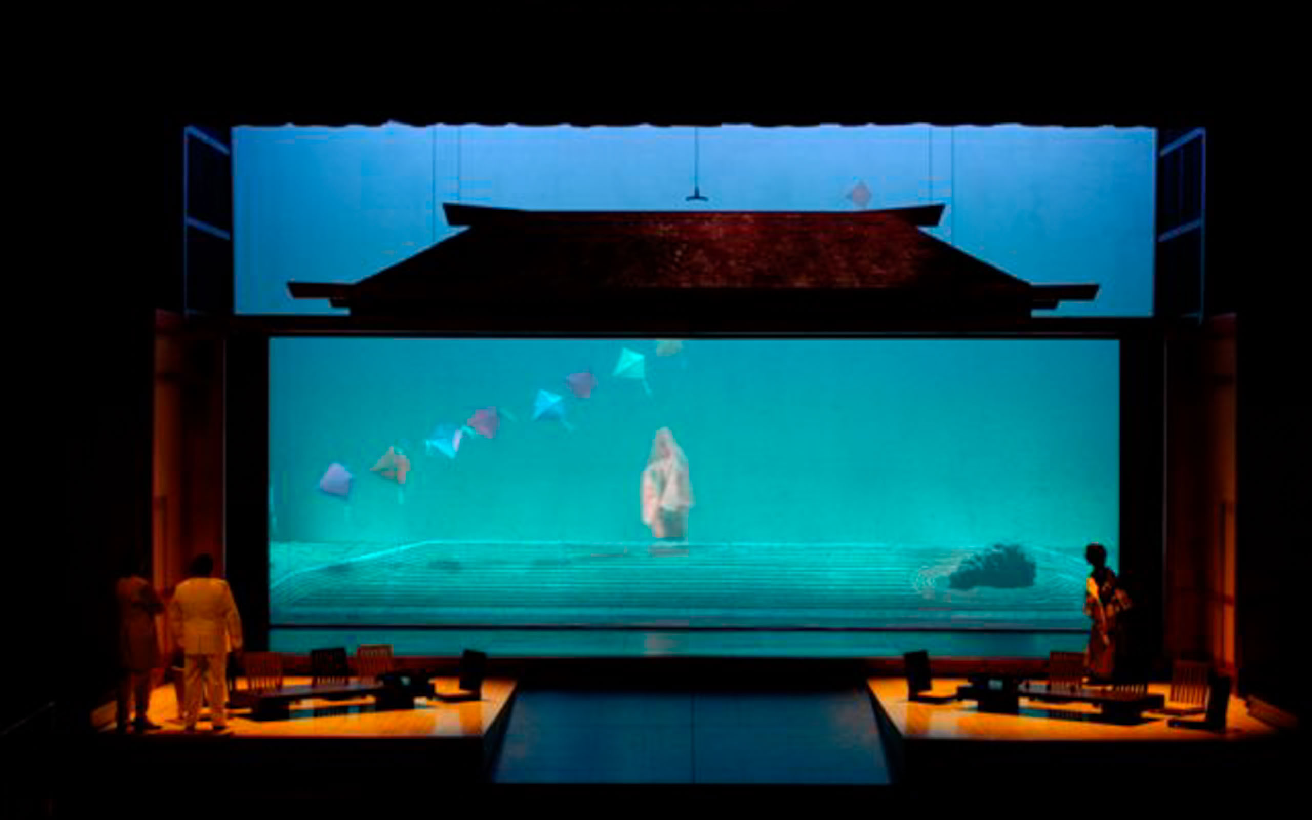 La regia di Stefano Monti, con la consulenza preziosa di Monique Arnaud, esperta di Teatro Noh, ha impreziosito la staticità dell'azione con una serie di movimenti delicatissimi e continui di figure ed elementi scenici, così da rendere l'atmosfera d'incanto della scatola giapponese, entro cui si cela il dramma che travolge l'ingenua Butterfly.